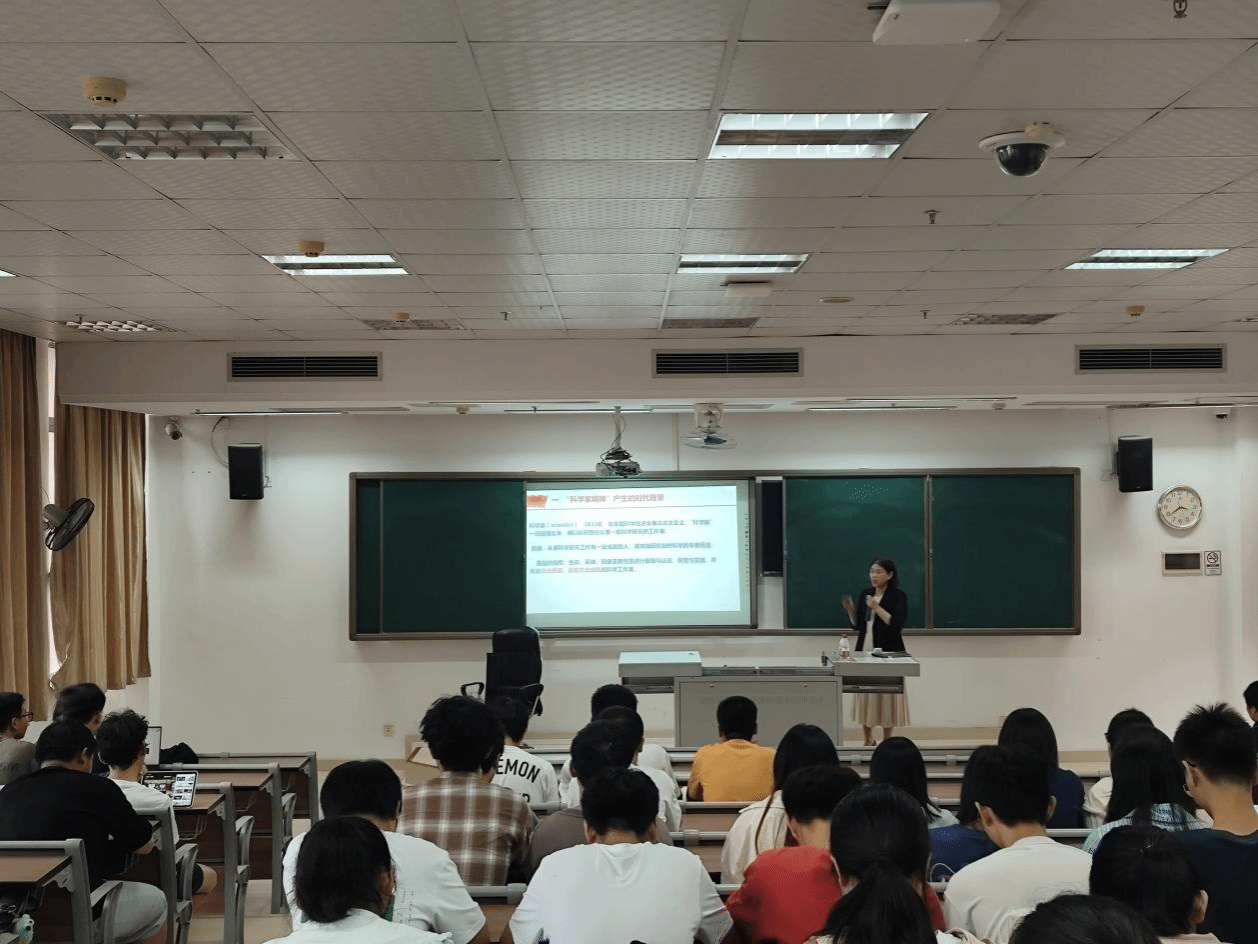 随后,李建华副校长以案释义,生动讲解钱学森、于敏、黄旭华、南仁东、屠呦呦、钟南山等伟大科学家们矢志报国、潜心钻研的故事。她指出,过去,在我们科研条件十分艰苦的情况下,我们的科学家都能淡泊名利、勇攀高峰、甘为人梯、胸怀祖国、服务人民,将自己的一生都贡献给伟大的祖国和科技事业,为我国实现了更多从0到1的原始突破,让我们更多的科技工作者站在巨人的肩膀上眺望更广阔的视野、开拓更卓越的成就。未来,我们更要认真贯彻落实习近平总书记提出的“崇尚英雄才会产生英雄,争做英雄才能英雄辈出”的指示精神,大力弘扬科学家精神,在全社会形成尊重知识、崇尚创新、尊重人才、热爱科学、献身科学的浓厚氛围,进一步鼓舞和激励广大青年做建设科技强国的奉献者、崇高思想品格的践行者,不断向科学技术广度和深度进军。