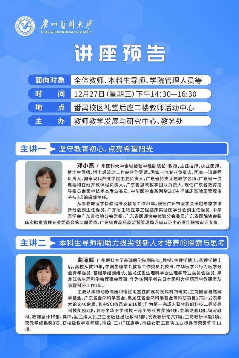【讲座预告】本科生导师经验分享会