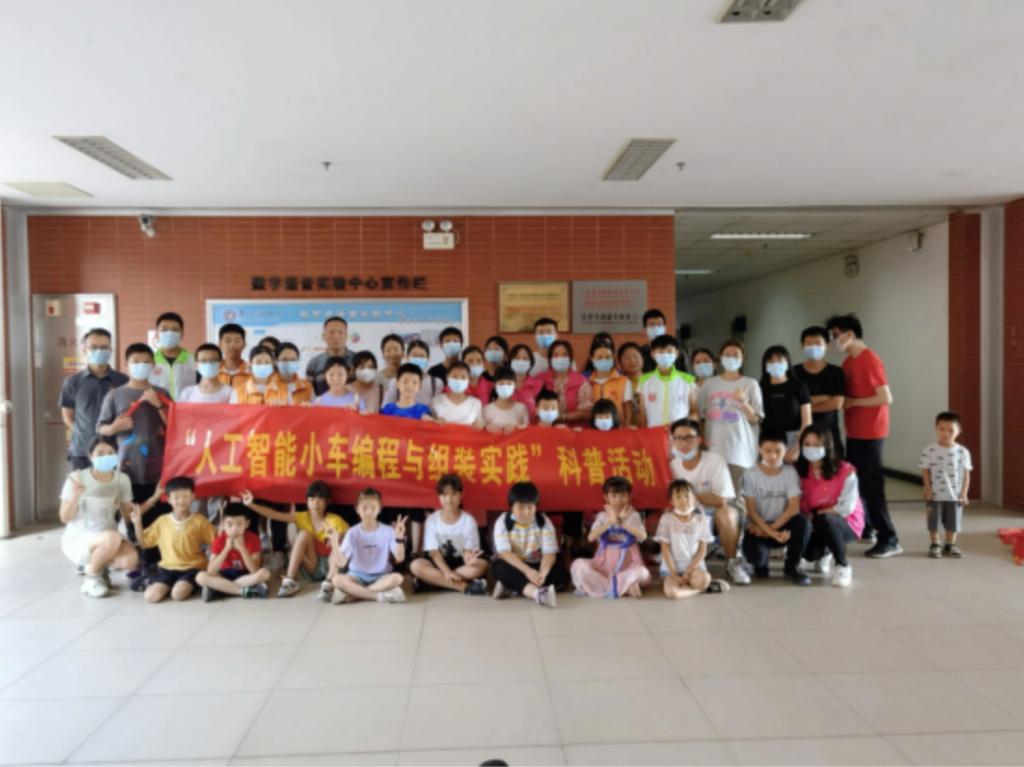 科普活动中,活动人员首先观看了无人机、机器人表演的视频,了解人工智能的基本概念。然后在十名余志愿者课的带领下,小朋友们一边学习动手编程、一边动手组装小车,并先后完成了温度测量、音乐播放、小车蓝牙控制、小车自动循迹、计时器、指南针等十余个项目制作。这些科普项融入了光学、电磁学、声学、物理学、数学等科学知识和科学原理,集知识性、趣味性、互动性为一体,大家互相探秘,在娱乐中悟出科学原理,亲身体验了科普的神奇与乐趣,激发探究意识和提升创新能力。