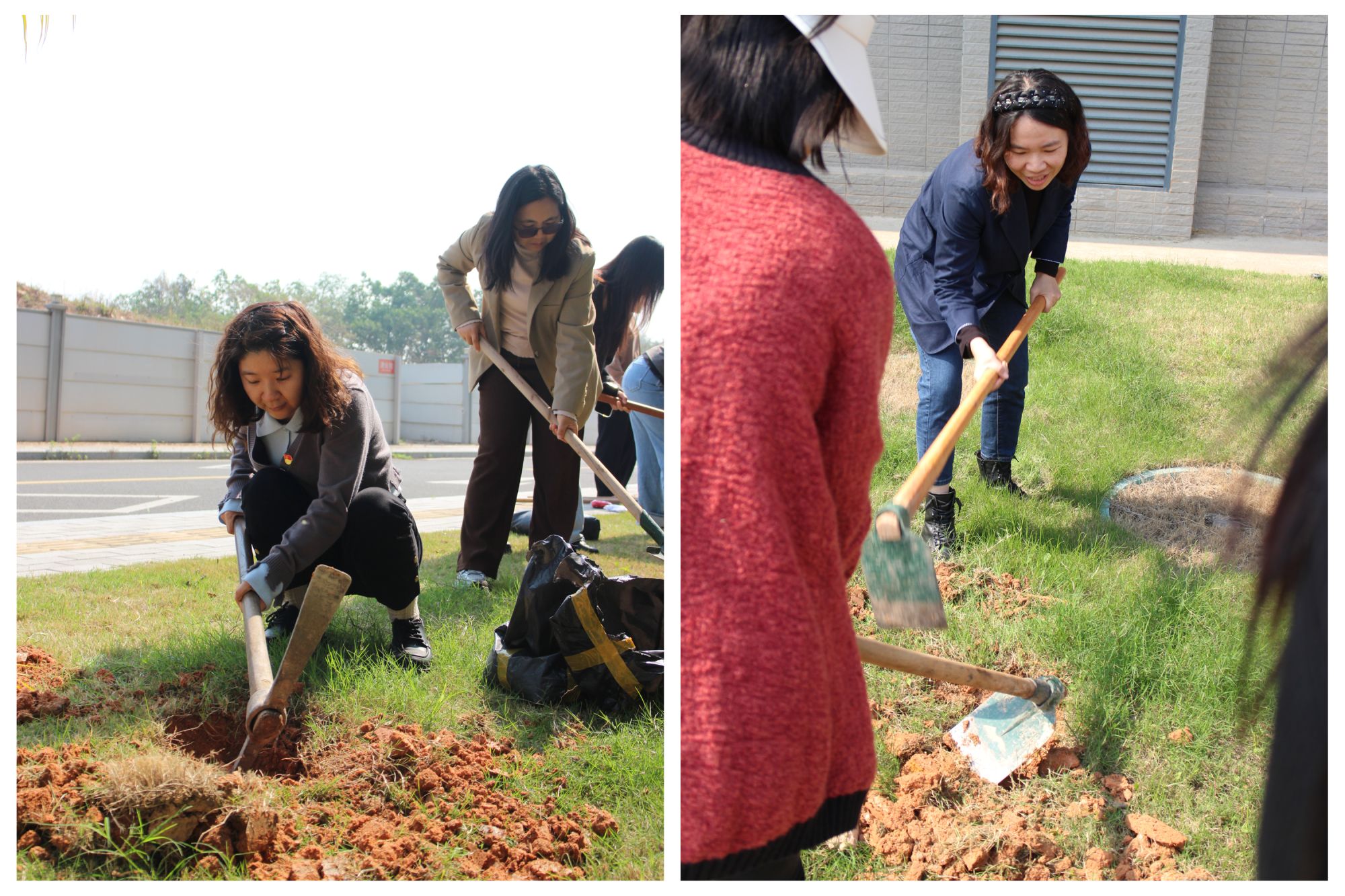 为深入学习贯彻习近平生态文明思想,全面落实党的二十届三中全会精神,推进绿美广东生态建设,培养青年劳动精神,3月21日,beat365在线唯一官网党总支在番禺校区二期立信苑I栋草坪开展“种下一片希望”植树节主题实践活动,学院党总支书记柳海山、党总支副书记梁杰芳及20名师生代表参加活动,为校园添新绿,以劳动绘春意。