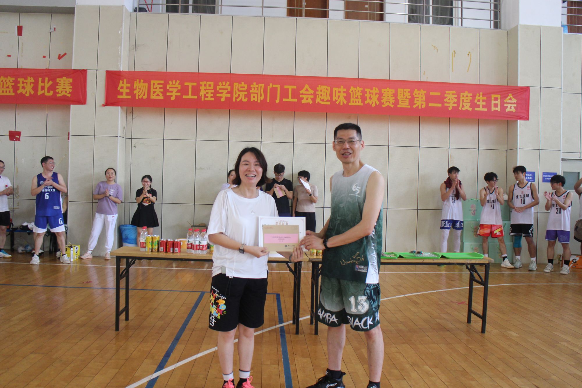 此次活动还特别安排了一场温馨的生日会。比赛结束后,部门工会为第二季度生日的教职工准备了精美的蛋糕和美味小零食。周如建副主席和各位院领导亲自为寿星们送上祝福,并与大家共同分享这份喜悦。生日会的举办让现场氛围更加温馨融洽。