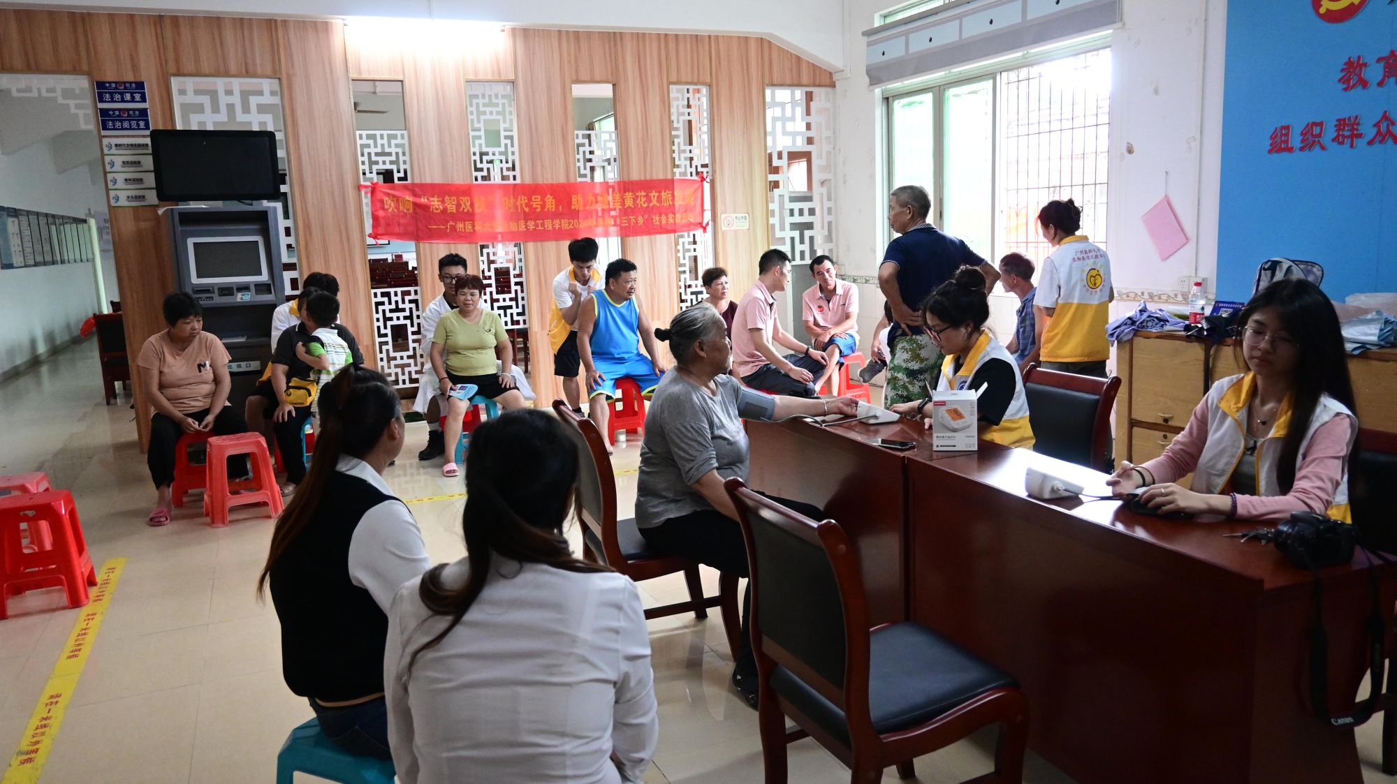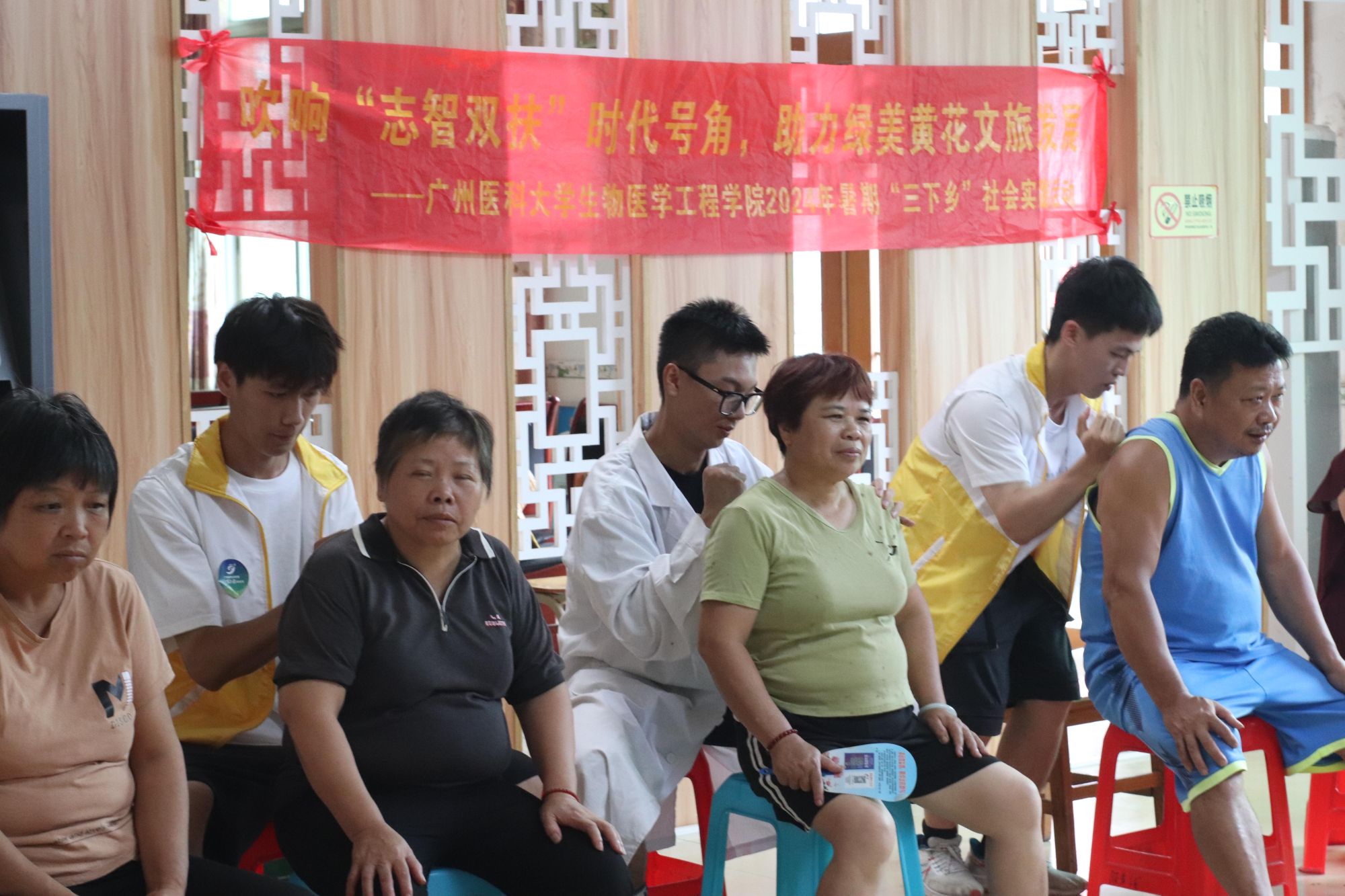 座谈会结束后,实践团团员代表组织团队成员开展如何因地制宜打造文创村落品牌,深耕黄花红旅文化的会议,团队成员积极参与讨论,建言献策。除参与座谈会外,实践团还在黄花村委免费为居民提供专业按摩、量血压和艾灸等义诊服务并科普了健康生活方式和疾病预防知识,帮助村民树立正确的健康观念。