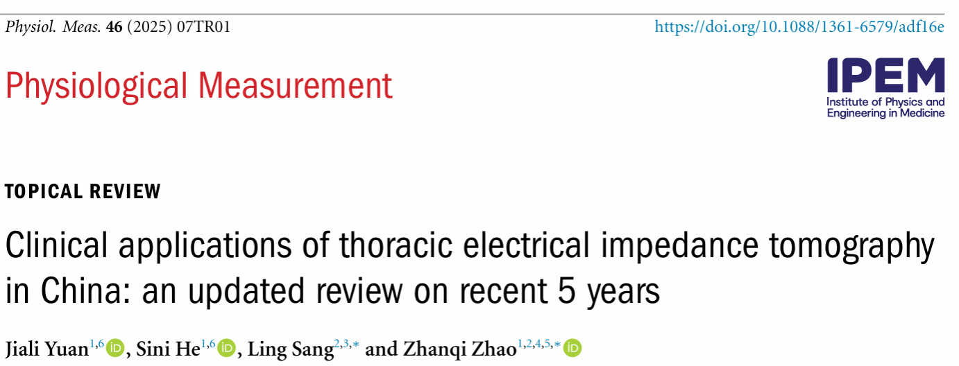 今年,beat365大学三年级学生袁佳丽在招展奇教授的指导下,以第一作者身份在45年老牌SCI生理学杂志《Physiological Measurement》上发表了题为“Clinical applications of thoracic electrical impedance tomography in China: an updated review on recent 5 years”的研究论文。该研究系统回顾了近五年间(2020年1月至2025年1月)胸部电阻抗断层成像(EIT)技术在中国医院临床研究与日常应用中的最新进展,全面总结了 EIT 在呼吸监测、治疗效果评估以及个体化通气策略制定等方面的实践经验与重要发现,为相关临床医师与科研工作者提供了具有价值的参考与思路。