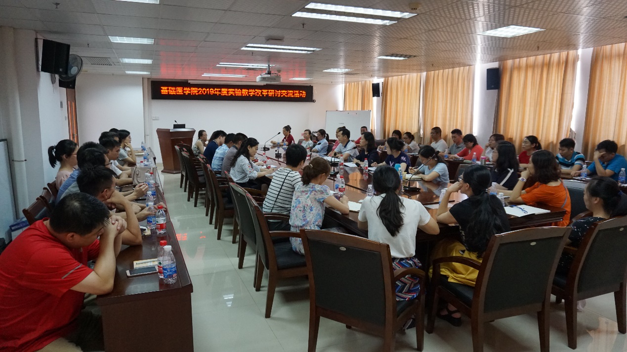 6月29日上午,基础医学院成功开展2019年度实验教学改革研讨交流活动,学院办公室相关人员、实验中心主任、全体实验技术人员出席了活动。活动由章喜明副院长主持,他表示本次活动的目的是让实验技术人员加强交流、相互促进、共同提高,积极参与实验教学改革、课程和实验室建设,进一步落实“以能力培养为导向,以学生为主体、教师为主导”的教育教学理念。