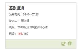教师在上课前的30分钟在E学中心发布签到通知,学生开始上课前的签到,为了避免部分学生的逃课现象,在本次课中还要进行不定时的第2次或第3次签到,学生的考勤分数按一定比例计入期末总成绩。
