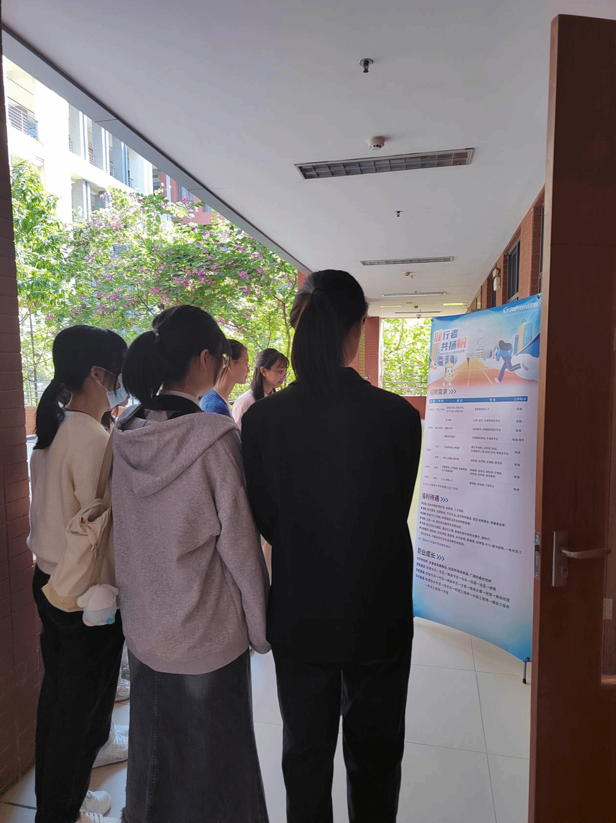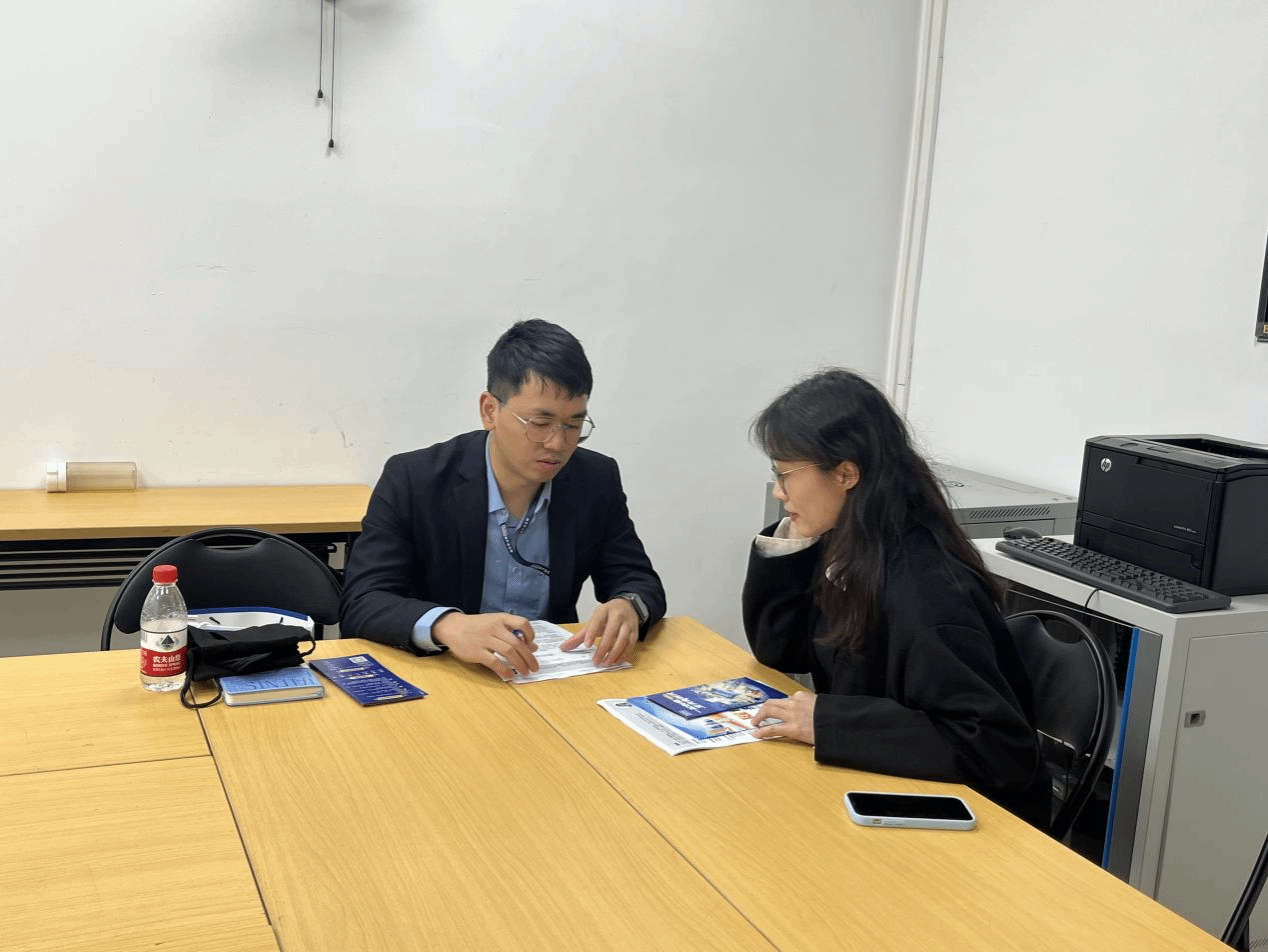 随后分课室进行面试,在招聘会现场,同学们投递热情高涨,积极向用人单位了解企业信息以及岗位需求,并有序排队投递简历。企业代表与毕业生进行面对面交流,让毕业生们有机会展示自己的专业知识和技能。2024届生物医学工程专业毕业生江同学表示,自己想要抓住这样一个好的机会,获得实习就业岗位,进一步拓宽自己的知识面。