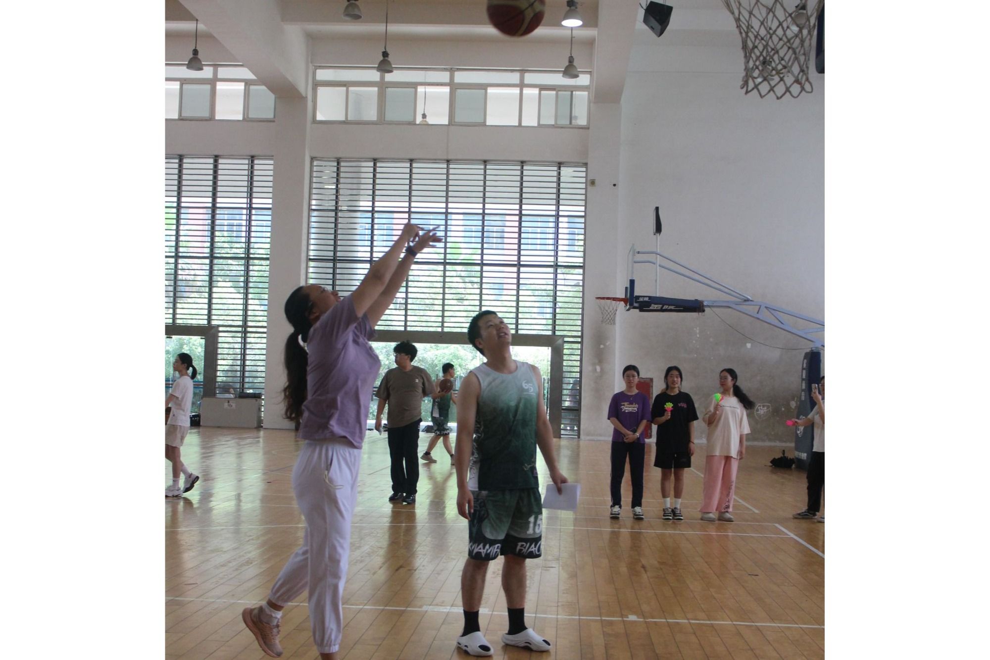 本次比赛不仅有酣畅淋漓的对抗赛,也有形式多样的趣味赛。趣味赛分为女子定点投篮个人赛及团队接力运球。