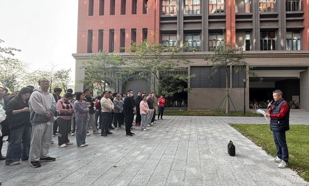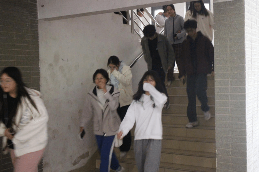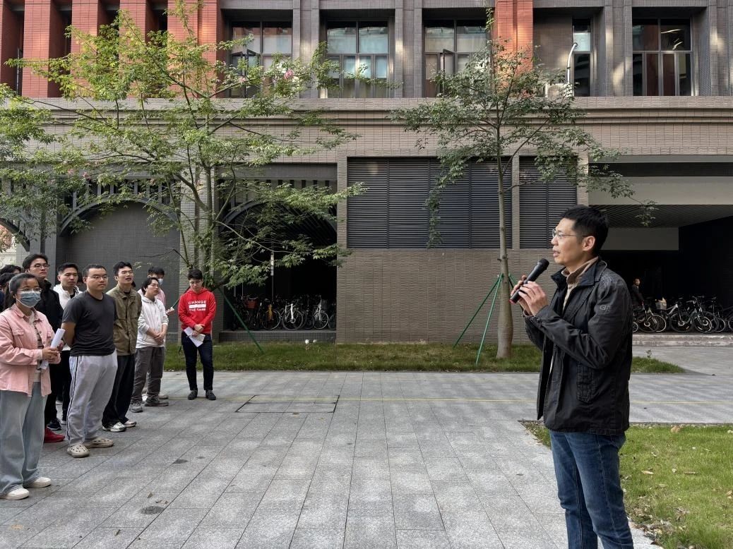 启动式后,“消防大体验”活动拉开帷幕。保卫处详细讲解本次消防演练的流程及注意事项,明确疏散路线和程序,医疗救护组准备就绪,全体演练人员回科技大楼6楼实验室待命。随着演练指令的下达,警铃响起,现场人员迅速反应,在保安的引导下,实验室全体人员从各疏散出口迅速撤离,最终在科技大楼紧急集合点空地集合完毕。