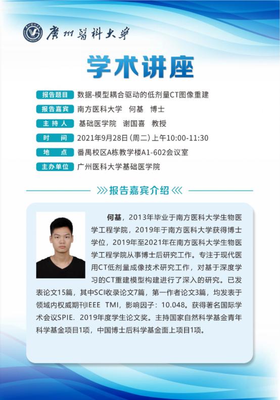 学术讲座——数据-模型耦合驱动的低剂量CT图像重建