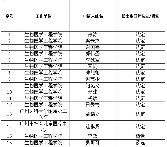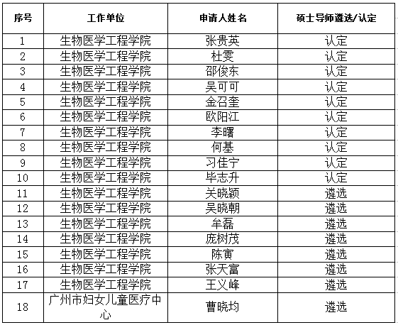 根据研究生院2023年博士生/硕士生导师资格遴选/认定工作的通知,学院有序开展相关工作组织和审核工作。本次博士生/硕士生导师资格遴选/认定工作依据beat365在线唯一官网印发《beat365在线唯一官网关于印发研究生指导教师管理办法(试行)的通知》 (广医大生工〔 2022〕 128号)文件,各位导师提交资料已通过学院三次审核确定,经学院学位评定委员会讨论决定分配名额如下。