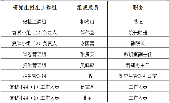beat365在线唯一官网研究生招生工作小组(见表1),由院领导牵头,学院纪检监察部门及科研办为主导,开展2023年硕士研究生招生工作。根据学院各学科方向的考生人数进行合理分组,并成立复试小组2个(见表2),每个复试小组7 人,其中至少3 人为副高以上职称。招生过程中严格按照“三随机”工作机制: “随机确定考生复试次序”、“随机确定导师组组成人员”、“随机抽取复试试题”。招生工作组和复试专家组成员要按照本方案开展复试工作,复试前要签署工作责任书,未签订工作责任书的不准参加招生复试和录取。责任书由学院科研办研究生管理办公室管理,保存时间不少于1年,以备查阅。