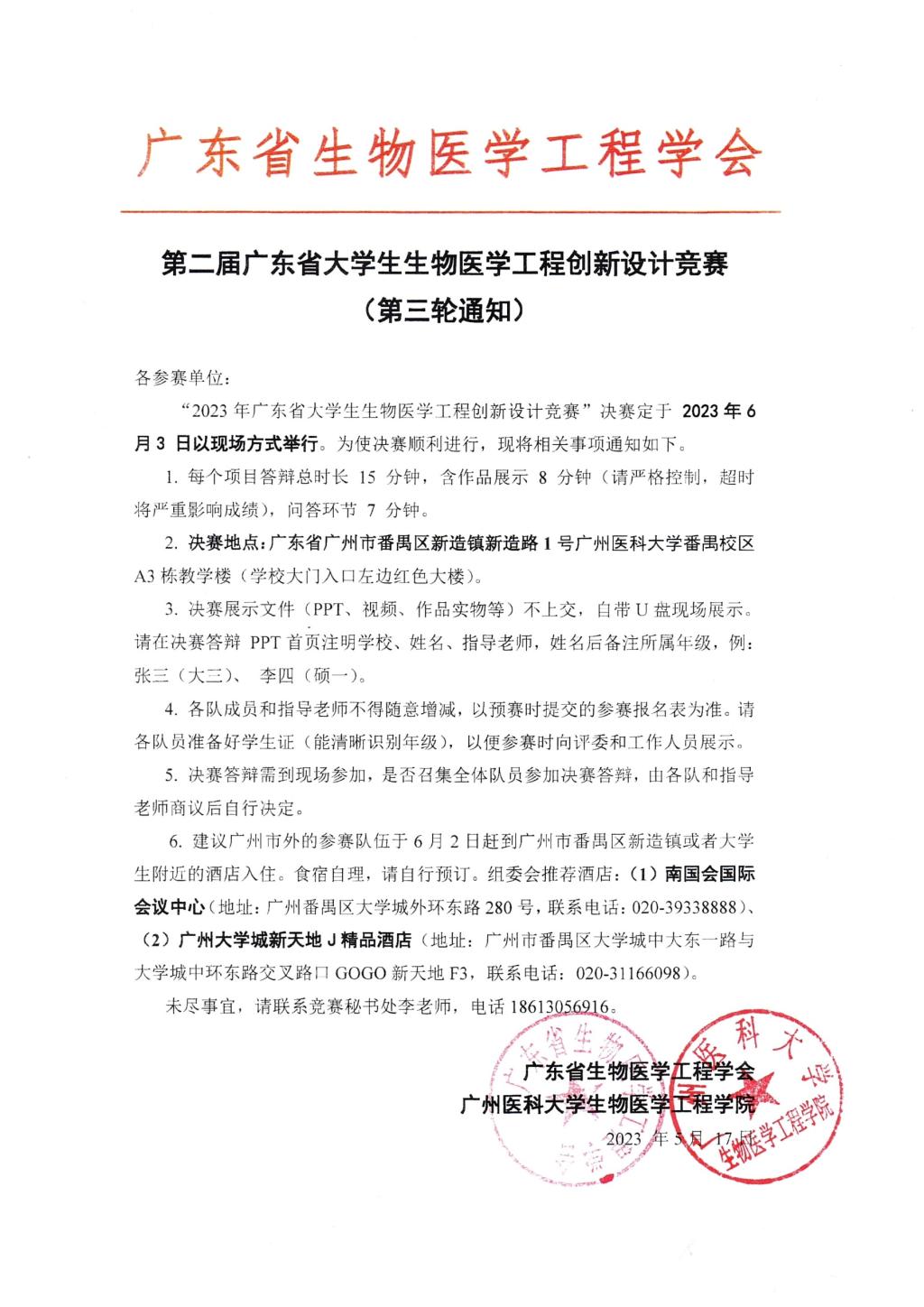 第二届广东省大学生生物医学工程创新设计竞赛(第三轮通知)